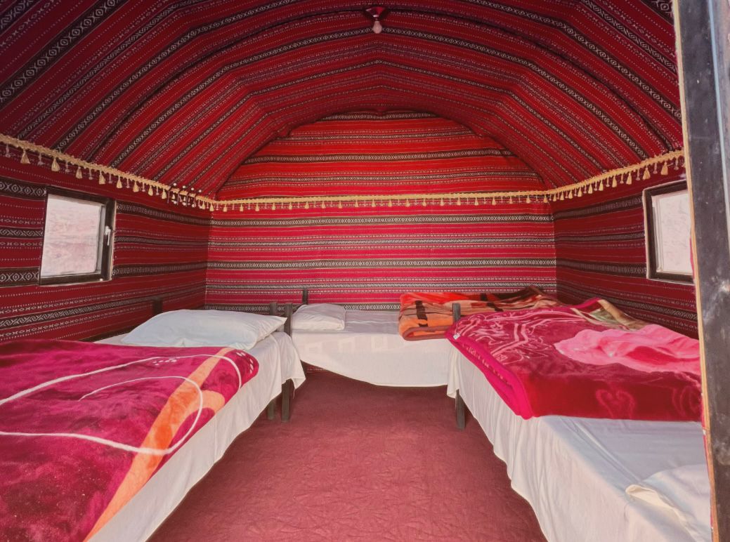 Perfect for small groups or families, our Triple Tents are equipped with three single beds, providing a spacious and comfortable option for a shared desert experience.
