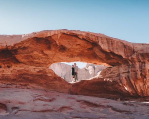 Begin your desert adventure with a warm welcome at our tour office in Rum Village, where you’ll meet your local Bedouin guide over a traditional cup of tea. Your journey kicks off with a visit to Lawrence’s Spring, a historic site linked to T.E. Lawrence and the Arab Revolt.